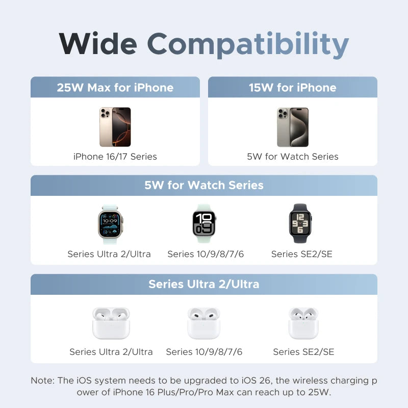 UGREEN 3-in-1 MagSafe Wireless Charger Stand 25W for iPhone 17 Pro Max & AirPods 4